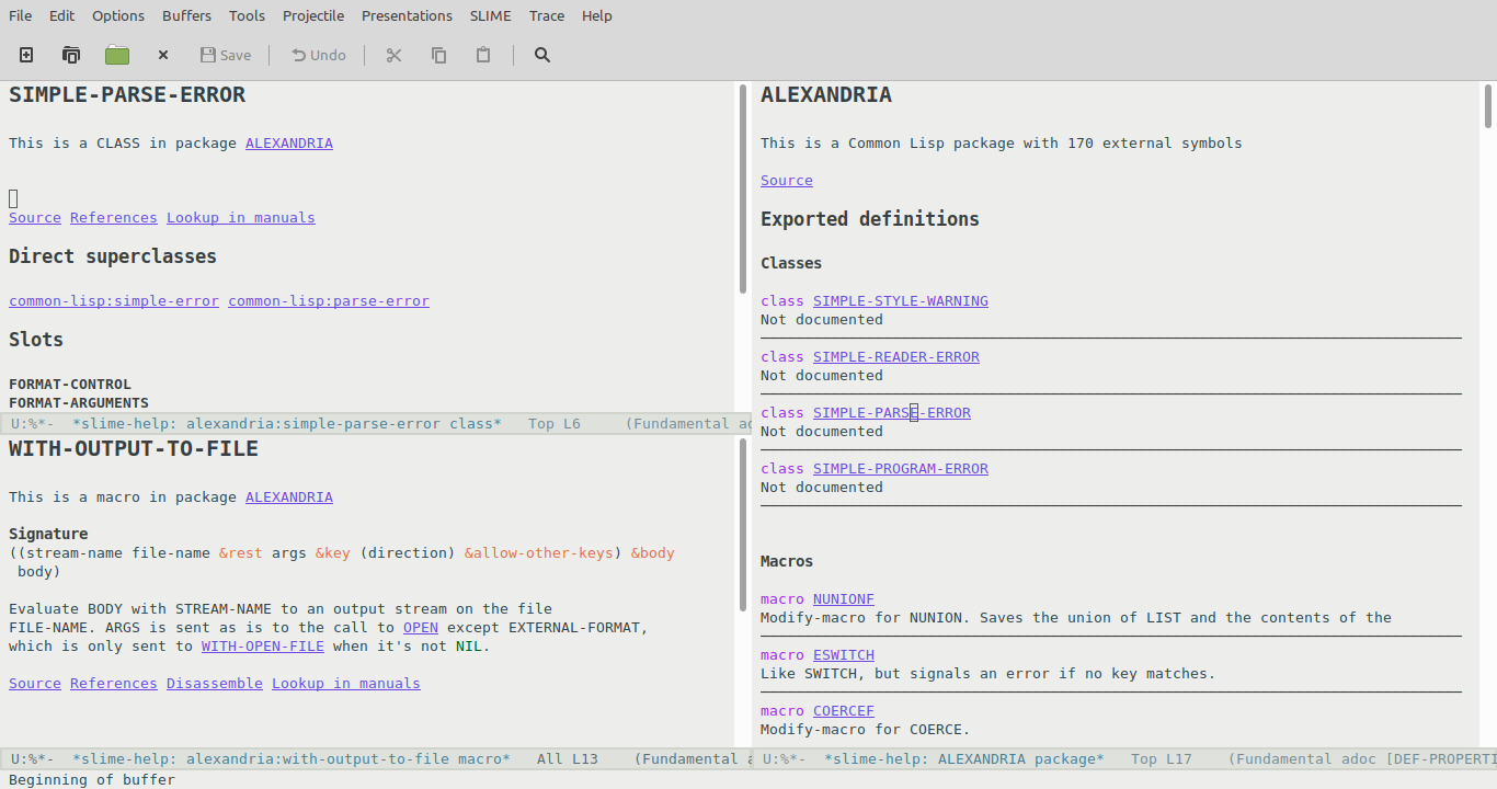 Note that we give function names for SLIME. They are most of the time similar with SLY.